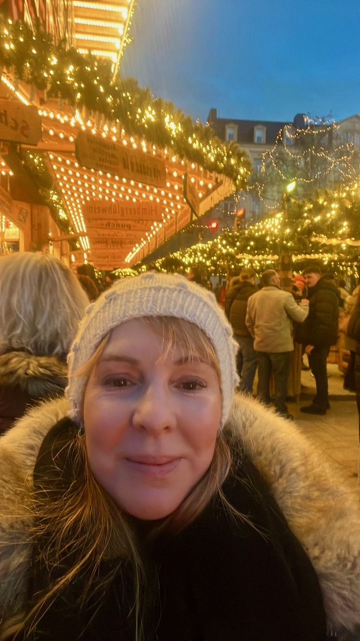 Ten years after leaving I returned this year, because Nowhere Girl and the rest of the Cate Austin series is being relaunched by Harper Collins, starting in January 2026 with The Woman Before Me. I wanted to re-fresh my view of Luxembourg and notice any changes. They now have a tramline, so I needed to include that! As we walked around the cobbled streets that we once knew so well, something limbic happened and the ten years melted away. Our faces were illuminated by lights as we visited wooden chalets selling trinkets, and looked up at the big wheel wondering if we dared go on it. We went ice-skating, laughing and falling over, and I felt that we were home once again; that my son and daughter were no longer the young adults they are, but were playful children once again.